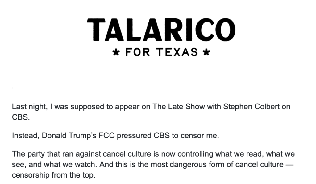 See him with Stephen Colbert on YouTube …censored by CBS to appease #1.