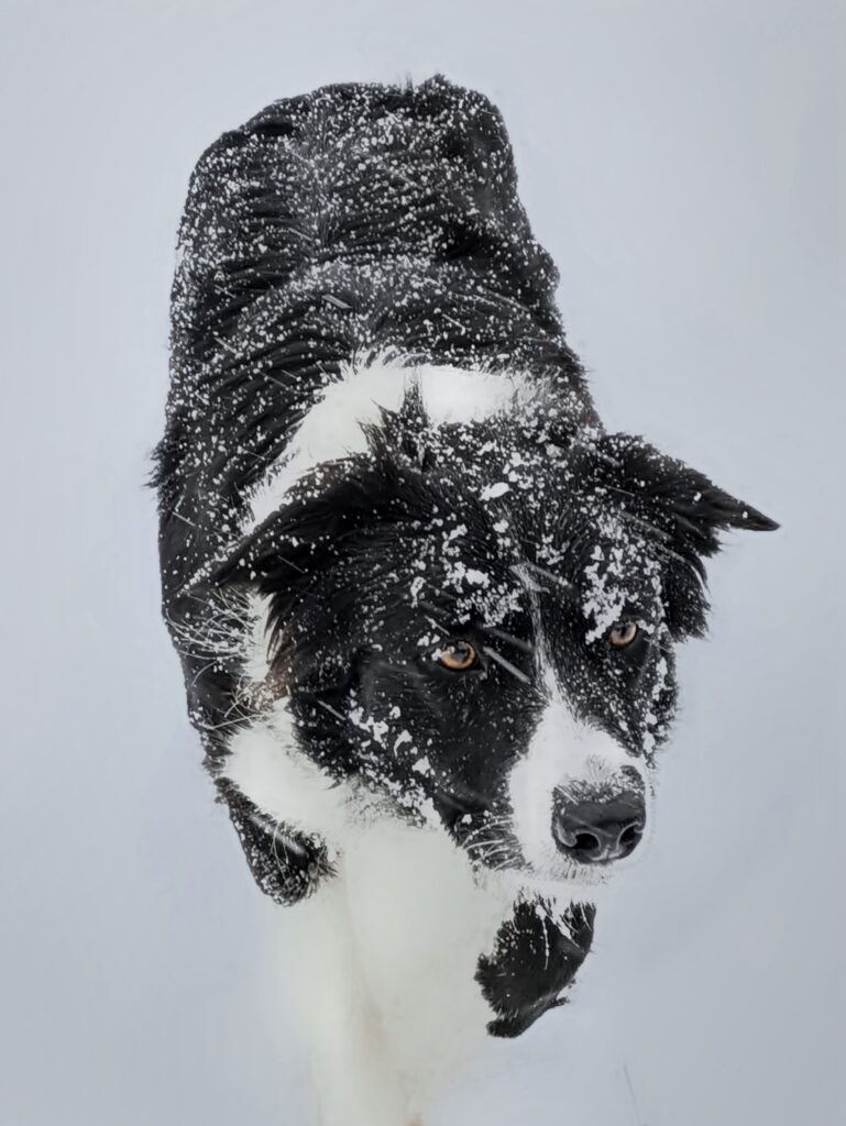 Martha sent me the most amazing photo of her Rain (Jazz x Max), now in Portugal, where Rain looks after 150 sheep in the uplands. I sighed at the beauty of the scene. Martha is a kindred spirit, a refugee from the chaos and horrors of America. I plan to follow in Martha’s footsteps, though to a slightly different corner. I must admit, the scene of Rain in the water and mist makes Portugal seem awfully nice.